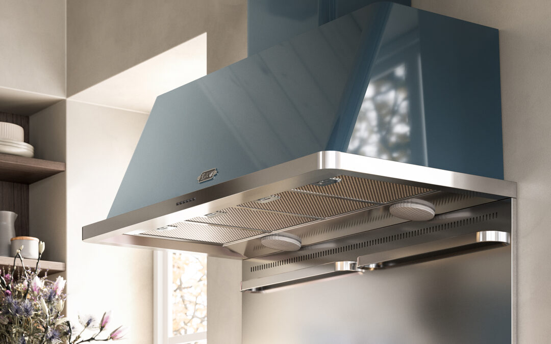 Nostalgie vägghängd fläkt 120 cm Vägghängd fläkt för frånluftsanslutning, komplett med motor och skorsten. Anslutningskanal dia 150 mm Fördröjd avstängningsfunktion 3 hastigheter + boostläge (47-56-64-74 db) Tvättbara fettfilter i aluminium LED-belysning...