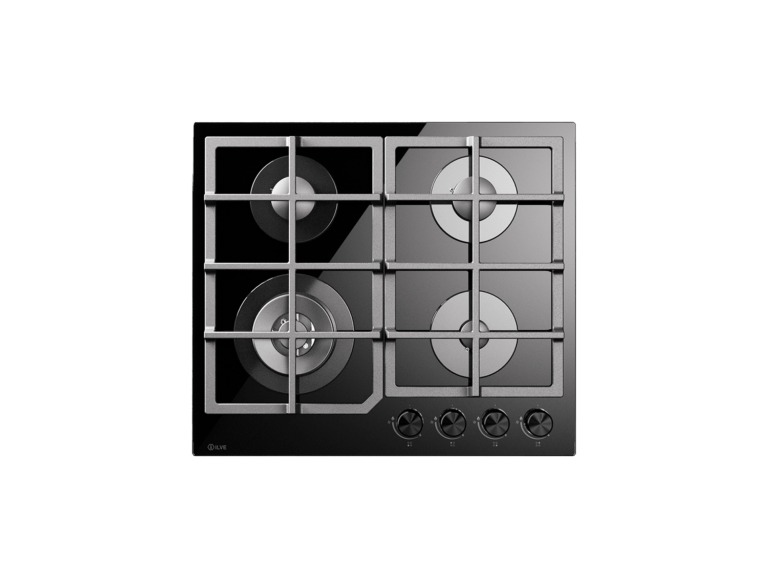 Professional Plus gashäll 60 med 4 brännare. Svart härdat glas och mattsvart vred.